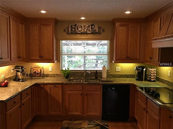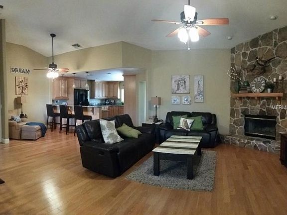 Beautiful 5 bedroom 3 bath home on a 1/2 Acre wooded lot in the city of Montverde, Walking distance from Montverde Academy. This updated open floor plan home has Wood floors with 42 inch oak cabinets with crown molding and under cabinet lighting. The walk in Pantry is over sized with additional cabinetry inside, the kitchen overlooks the pool and back yard. The vaulted master bedroom has two large Master closets, with its on-suite bathroom. Two of the bedrooms share a Jack and Jill bath with access from both bedrooms. There is a dedicated homework station off the kitchen with matching cabinetry that could also be used for a office or craft area. The large Great room has a Floor to ceiling wood burning fireplace with real stone and mantel. With A large Storage closet right off the great room. There is a beautiful salt pool that is solar heated with propane heated spa with a spill over into the pool, the pool also has a sun shelf with jets. The backyard has a three board wood fence with wire for pets. It has a large wood play set and outdoor fire pit with seating, there is wood trellis over the outdoor kitchen with plenty of room for seating. The backyard also has a large shed to store all your lawn equipment. This house is located on a dead end street with little road traffic. Come and see this Move-In Ready House Today!