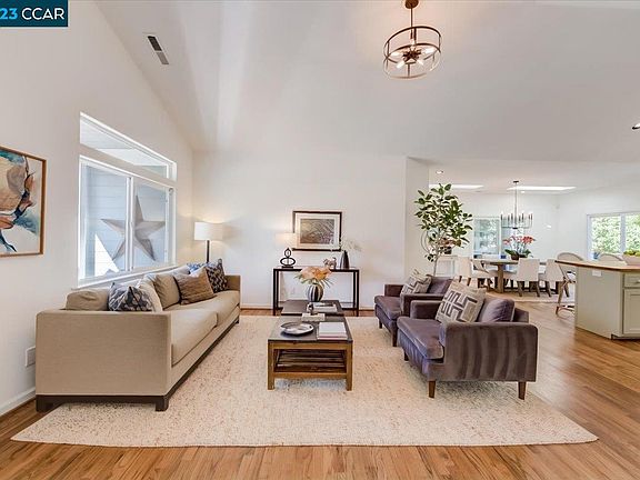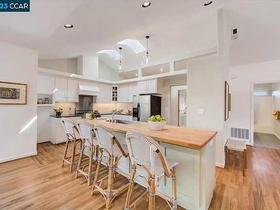Quintessential Cottage style home with endless curb appeal in the coveted Larkey Park neighborhood of Walnut Creek! This charming single-story home has been updated throughout and features 3 beds, 2 baths, and an open floor plan on an expansive level lot; ideal for indoor-outdoor California living. The spacious living room, dining area, and Chef's kitchen with large island make entertaining easy. Off the dining area, you will find an enclosed porch that is ideal as a work space, workout space or play room. The spacious primary bedroom with deck access enjoys a bathroom with two sinks and generously-sized shower, and large walk-in closet. Additional features include soaring ceilings, skylights, an abundance of natural light, updated bathrooms, a light filled laundry room, hardwood flooring and front porch. Step outside to the dream back yard, featuring a large deck for entertaining and level lawn, perfect for play, gardening, the possible addition of an ADU or pool and anything else you might need! Ideal location only minutes to commute routes, BART, top-rated schools, 24-Hour Fitness, Larkey Park and downtown Walnut Creek.