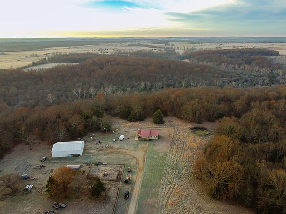 Tucked back from the road and nestled on 20 acres, this custom built home is a must see! With a creek bottom and mature oak trees, this property boasts with potential. On the front four acres, you will find a custom built 3 bed, 2 bath home. Occupied by the same owner for 20 plus years, this home has been well loved. The sellers would say the wildlife and peaceful setting are two of their favorite benefits of this property, and just a short drive to Pomme De Terre lake. Through the covered front porch, you will walk into the main living and dining area. With a living room and den, there are customizable options to the layout of this home. The kitchen just off the living room features custom built cabinets, double ovens and a cabinet pantry with excellent storage space. The mud room, with it's own outdoor access, features a sink and storage racks. Down the hall, you will find the primary and 2 additional bedrooms. The primary closet has been well designed to maximize space. With lots of natural light pouring into this home, the outside space feels inviting. The covered front porch leads to the side deck with plenty of space for outdoor cookouts. The property includes a large 60x40 insulated shop with concrete floors, custom storage closet, and 14 foot slider doors on both ends. With a pipe fence corral and covered storage areas, the opportunities are endless.