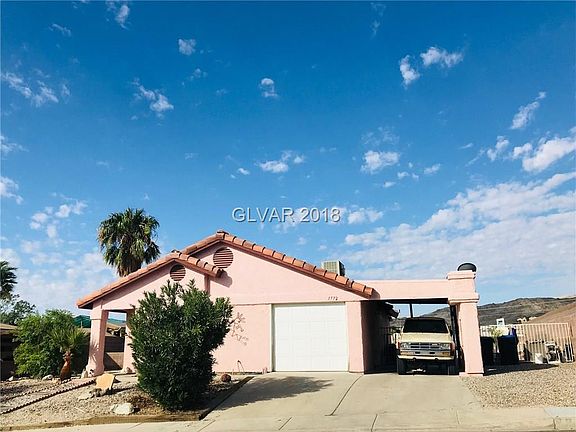 Great single story home on elevated lot, minutes form the Colorado River. Home has NO HOA, RV/Boat parking and great mountain views from the back. Large back yard with covered patio, easy maintenance landscaping, oversized 1 car garage and attached one car carport. 2 bedrooms and 2 full baths, open floor plan with vaulted ceilings. Easy access to shopping, schools, River and Laughlin Hotel/Casinos. Take advantage of Nevada's NO STATE INCOME TAX!