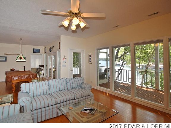 Fantastic Four Seasons gem with generous 160+ feet of gentle lakefrontage, situated in a cove but with a lovely channel view. This home was originally 5BR, but opened up to accommodate a billiards table and it's included! In fact all the furniture is included - practically turn key. Prater-Backsen custom build, this home is impeccably cared for and in excellent condition, move in ready. Recent updates include all new heating/cooling, granite & stainless in the kitchen, carpet & tile, exterior painted in 2013. Hardwood floors & screened porch w/dry storage below installed in 2004. Dock was expanded, completely reinforced, electric up to code, in 2015 - slip is a 14x40 filled in 4' - and comes with mini-fridge, stereo & speakers, Wet Steps.