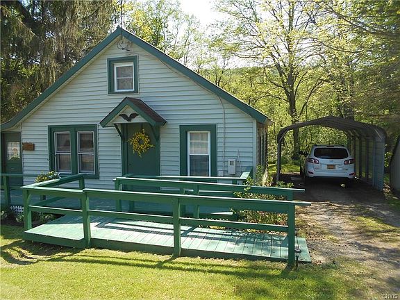 Adorable cottage situated on two lovely parcels totaling 6.05 acres. Included in the sale is one parcel at 1.50 acres tax map#164.00-01-03.000 and 2nd parcel at 4.55 acres tax map#155.00-01-09.100. Enjoy the East Branch Owego Creek while picnicking in the backyard. The windows have been replaced and there is a 25' dug well. The metal carport keeps your car covered and leaves room for more parking. The water pump is located under the kitchen counter, as well as the holding tank, so not exposed to cold, winter elements. Easy access to front door with full length front deck. The enclosed entryway is ideal for storage, coats, and shoes.