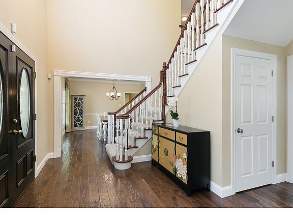 OPEN HOUSE CANCELLED. A beautiful 2 story home with a charming front porch in a Popular Neighborhood! Tasteful dark wood floors throughout the main level. Separate dining room is across the center hall from the office/living room. French doors lead you to the open hearth room with a custom stone fireplace w/gas logs and glass door to deck overlooking private lot backing to trees. Adjoining, white updated kitchen has granite counter tops, custom cabinets, custom island, Subzero refrigerator, stainless appliances, WOLF 6 burner gas cooktop oven & butler's pantry. Adjoining sunroom has vaulted ceilings w/walls of windows. Main floor laundry next to half bath. Second Floor Primary Suite has vaulted ceilings, 2 walk in closets, updated bath w/dual vanities, walk-in shower & jacuzzi tub. 3 additional bedrooms, one has Jack & Jill bath and one has private bath. Sunny walk out LL, finished family rm,wb fireplace,wet bar, bedroom & full bath.3 car garage,Neighborhood Pool Additional Rooms: Sun Room