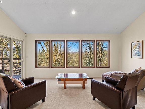 Sitting high in the trees on a quiet cul-de-sac, this idyllic spot is a peaceful hideaway. The main level features a flexible floor plan with multiple options for dining and casual living spaces plus three covered decks for enjoying your morning coffee, barbecuing year-round, or relaxing at the end of the day. Retreat to the enormous primary suite to rejuvenate the soul and get lost in nature. Play billiards and host parties in the media room, with wood plank ceiling and custom built-in with a murphy bed for an additional guest room. New since 2018: 96% high efficiency furnace, tear-off 30-year roof, gutters and downspouts, electric panels, remodeled bathrooms, triple pane windows, hardiplank siding, garage door, decks and balconies, exterior stairs, earthquake retrofitting, and more! Bonus 1,200 sf of crawlspace, much of which is tall enough to stand in, has both interior and exterior door access for infinite possibilities. Join the Lake Easement, Palisades Community Club, for fun on the lake. Plus the new Lake Oswego Recreation and Aquatics Center is opening soon!