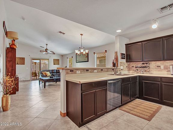 Welcome to Sierra Montana! A Community filled w/ parks, greenbelts & walking paths! This well-maintained home offers 3 bed, 2 bath and a lg kitchen. With North/South exposure, this open concept home is light and bright and perfect for entertaining. The spacious eat-in kitchen offers ample cabinets, newer appliances and plenty of counter space. Tile flooring throughout the house for easy cleaning. The master BR with en-suite features a lg soaking tub and walk in closet. Step outside and enjoy a covered patio with extended slab ready for those backyard BBQs. Bring your toys as there is a large RV gate and paved side yard perfect for parking. All this, and a great location close to fabulous shopping, a wide variety of restaurants, good schools, & very convenient access to State Route 303!