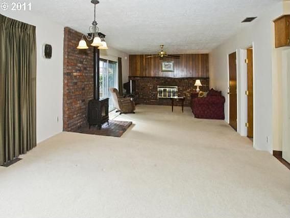 Perfect first time buyer's house. Move in ready. Newer carpets (hardwoods underneath in living and bedrooms). Really nicely remodeled bathrooms. Central air conditioning. Family-room with wood burning fireplace, ceiling fan and gas wood stove. Fenced yard with covered patio, new landscaping with Rainbird sprinkler system in the front and back yards.