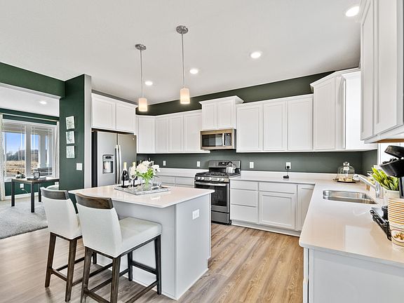 Move-in ready Springfield with an open concept main level featuring a spacious kitchen anchored by a large island to gather and entertain, huge main level family room with natural gas fireplace wrapped with beautiful stone surround for the seasons and holidays. This home also features a distinguished large owners entry, stunning kitchen cabinetry with a great sized island, and a private spa-like shower/bath to complement the owner's suite for some rest and rejuvenation. The community is encompassed by the pristine beauty of the Crow River, mature trees and city park. This charming community is just minutes away from downtown Rogers with popular restaurants, bars, shopping, entertainment, golf courses, nature trails and so much more! Frankfort Park adjacent to community. Surrounding shops, schools, amenities just minutes drive. Easy commute with surrounding locations.