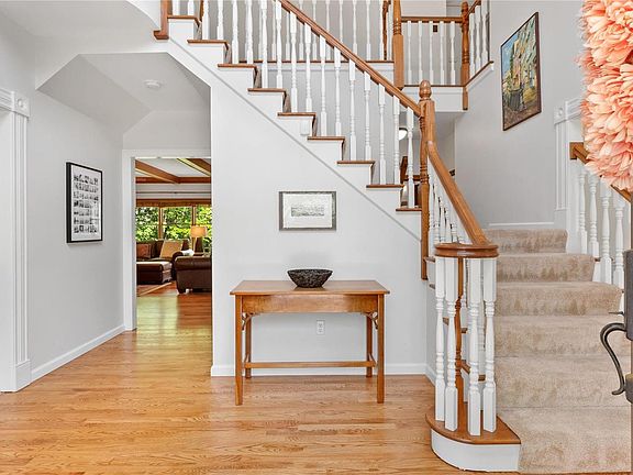 This spectacular 2 story home is situated on a private lot backing to trees with a beautiful deck, a screened-in porch & lower patio. Enter through the 2-story foyer which is flanked by the dining rm with newer wood flooring & a den. The great rm features a box/beamed ceiling, bay window, built-in bookcases, fireplace & wood floors. The kitchen is the heart of the home with granite countertops, cabinets with crown molding, center island with a breakfast bar, gas cooktop, newer dishwasher, oven & microwave (2022) & opens to the breakfast rm & hearth rm with a planning desk & fireplace. The UL boasts the primary suite with an updated full bath featuring double vanities, zero-entry shower & soaking tub. 3 addtl bedrms, 1 full bath with double sinks & a Jack & Jill bath complete the UL. The walk-out LL offers a rec rm with a fireplace, a playrm, an exercise rm/5th bedrm & full bath. Addtl features include ML laundry, 3 car garage, subdivision pools, tennis courts, walking trails & more!