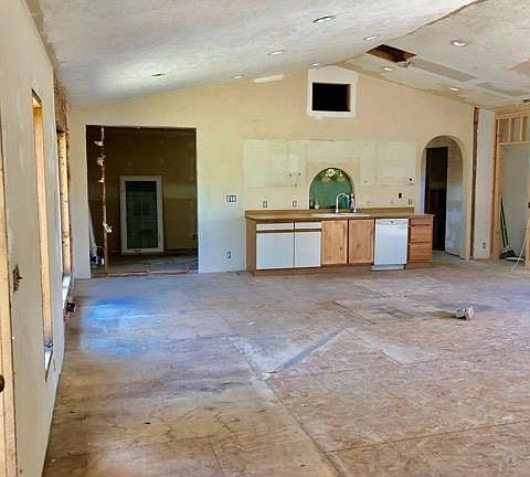 Beautiful 20 acre property with a mix of old growth Juniper and Pine trees. A peaceful setting with Cascade mountain views. The home has an open concept living area and vaulted ceiling. Currently there is a full bath, rough-in for 1/2 bath and area with plumbing for a future master bath. New laundry/mud room is framed, wired and plumbed. New space for office off great room. Roof is only a couple of years old and there is a new electrical panel and wiring throughout. Bring your contractor and put your imagination to work creating your own use of the interior spaces!