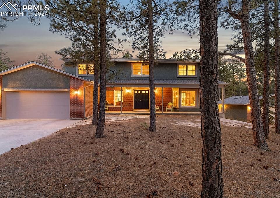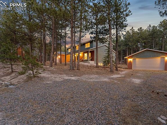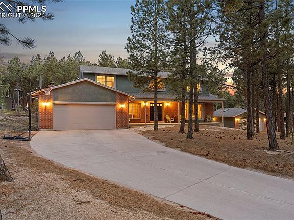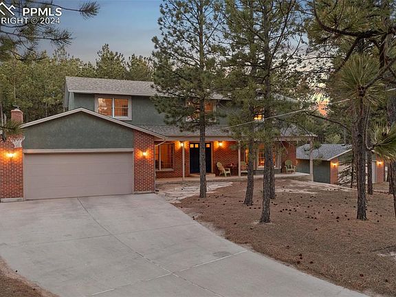 A MUST SEE in the Tri-Lakes area!!! Say “Hello!” to your peaceful oasis! This beautiful property sits on almost an acre corner lot in the desirable Woodmoor area. 4 spacious bedrooms, an office and 3 baths are nestled into this almost 4000sqft home. Featuring an attached 2 car garage and another detached 2 car garage with electrical, this property will be hard to beat! This home boasts many features of more recently built homes including newer stainless appliances in the kitchen, spacious primary suite with five-piece bath including double walk-in closets, separate soaking tub room and water closet/shower room, sitting room/office adjacent to master with additional hallway entrance, storage room with potential for second floor laundry, skylights and large bedrooms. The flooring includes original oak hardwood in amazing condition, quarry tile and newer carpet. The unfinished basement with walkout and garden level windows is plumbed for a full bath and ready for your expansion plans. New roof in 2020 and new furnace in 2024 with 10 year warranty! Breathtaking mature trees and wildlife right outside your window, this property is tranquility at its finest! Come check it out!!