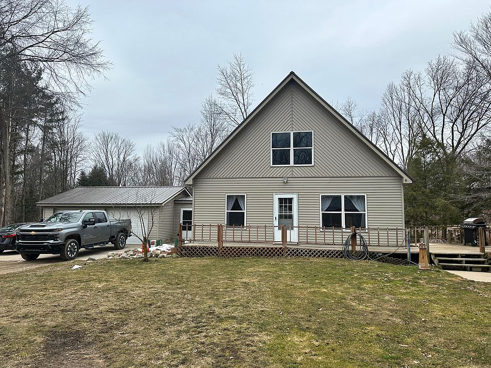 2 Bdrm, 2 Bth Chalet home on full walkout basement with two additional Bdrms, main floor laundry, two stall attached garage, pole barn and shed on 17.36 Acres of land. Great hunting and if you wanted you could make the pond nicer with a little work. Give us a call for your personal tour!