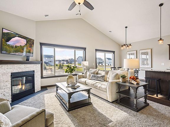 Stunning one level living villa style, new construction, built by Eternity Homes. This open & spacious plan is easy living at its finest. Association maintained offers snow & lawn care & trash. This home features vaulted ceilings, a gas fireplace, solid wood doors, solid surface countertops, wood floors, custom trim work, & tile floors. Includes landscaping & a patio. LP smartside siding. Quick move in! Other floor plans and pricing available. Days on market is due to the development not being ready.