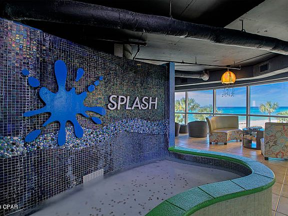 Splash is the favorite family vacation destination in Panama City Beach. This gulf front resort has many amenities including a water park with a ''Lazy River'', 2 heated pools, 2 hot tubs, fitness center and arcade filled with many games. Located just minutes from the very popular ''Pier Park'' with many options for dining, shopping and entertainment. This 1 bedroom, 2 bath condo sleeps six and has a living/kitchen area with stainless steel appliances, side by side refrigerator/freezer, a microwave oven and granite countertops. The master bedroom has a king-sized bed and a full bath en suite. The hallway bunk beds and a sleeper sofa access another full bath that doubles as a convenient powder room. This well maintained condo has been recently painted and crown molding added.