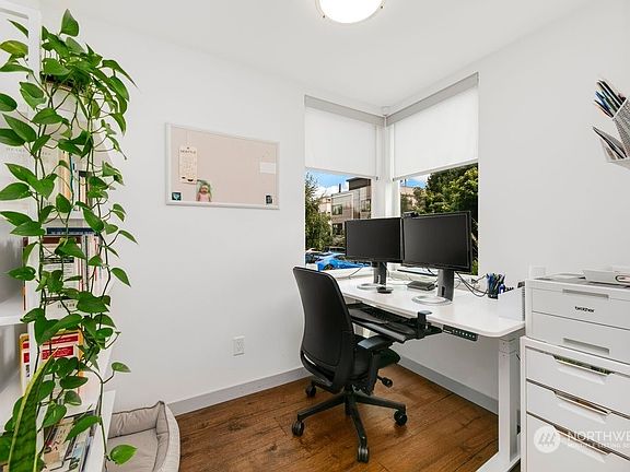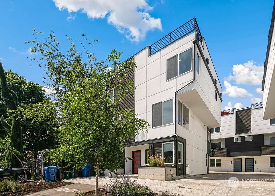 Charming 2 bed, 2 bath home in desirable Seattle location. Lower level boasts versatile work-from-home space, bedroom, and 3/4 bathroom. Main level features an open floorplan with a spacious living room, kitchen, and dining area. Private primary suite located on the top floor for maximum privacy and comfort with a 3/4 bath and walk-through closet. Enjoy breathtaking city and mountain views from the expansive rooftop deck. Well-designed layout provides ample natural light throughout the home. Modern finishes and tasteful upgrades enhance the overall appeal. Conveniently located near shops, restaurants, light rail and parks. Move-in ready, offering a perfect blend of style and convenience.