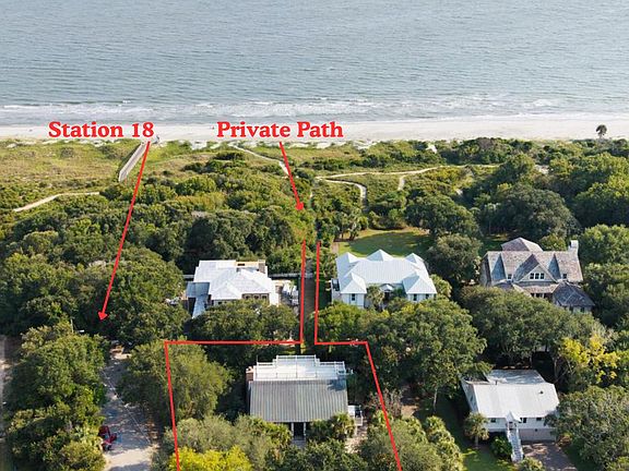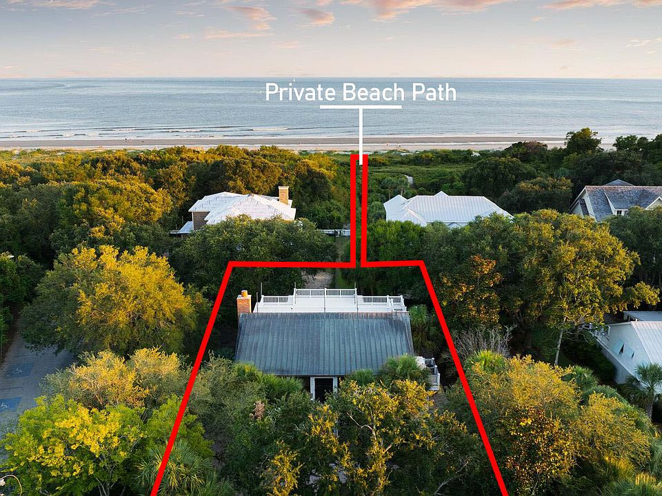 Welcome to oceanfront Sullivan's Island! With sweeping views of the Atlantic and a private beach path, this 4-bedroom, 4-bath, 2,784-square-foot classic beach house is a true gem. Expanded and restored in 2004--with thoughtful updates since--it is completely turnkey and ready to enjoy. The home's character shines through details like its original 1950s chimney, a copper roof, IPE decking, and vaulted beadboard ceilings. Expansive front and back porches capture ocean breezes, while a rooftop crow's nest offers a one-of-a-kind vantage point for watching the cargo ships glide by.Inside, the main level features a vaulted great room with ocean views, the primary suite, and a guest room. Downstairs, a second living room with a kitchenette and two additional en suite bedrooms provide comfort and privacy for family and guests alike. A whole-house generator adds peace of mind, ensuring this coastal retreat is as practical as it is charming.
