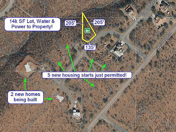 Call or text the property owner. Contact information and website link can be found at the bottom of this page called: "See listing website". Rio Rico, AZ - 0.33 Acre Lot in Developing Neighborhood, Water & Power, Didn't Pass Perc, Can Build w Alt. Septic, 5 Homes Being Built Same Street, Est. Mkt Value $10,000! No HOA, flat to slightly downsloping 1/3 acre building lot (14,375 sq ft) on a paved road with water service and power to the property line, 2 new homes being built and 5 new housing starts in the neighborhood with gorgeous views of nearby mountains and rolling hills. This property is 2 miles to Interstate 19 near banking, groceries, restaurants and gas stations, and Walmart is 23 minutes away in Nogales, while being 59 miles to Tucson, 20 miles to beautiful Patagonia Lake for fishing, boating, hiking and recreation and there is plenty of outdoor life and wilderness to explore with mountain ranges nearby being as high as 5,600 ft! The elevation of the Rio Rico Southwest is 3,481 ft, making for pleasant year-round weather that is usually 15-20 degrees cooler than Phoenix. The lowest-priced comparable lot that also didn't pass a perc test in this neighborhood at 1770 Brasil Ct with water and power just sold for $10,500 on Zillow. This lot like all lots in this area requires a septic system to be installed. A conventional septic system costs between $8,000-$12,000 and since this lot did not pass a perc test, figure on installing an alternative septic system that costs between $15,000-$20,000. Get this property today and hold for investment, or build your dream home!