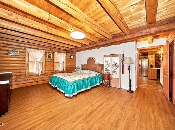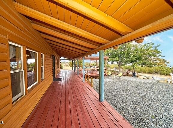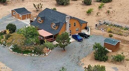 Charming Beautiful Custom Home is located on a quite Hollister Rd, unpaved. this incredible valley views. It's completely fenced out. There's an automatic gate installed. There is a greenhouse frame in the backyard. There are other fruit trees. There is a Mountain High Ski Resort within 5 miles. This beautiful house made of log materials. There is a covered petio overlooking the beautiful scenery of day and night in downtown Phelan. There are 28 solar panels already paid. Sold as is.
