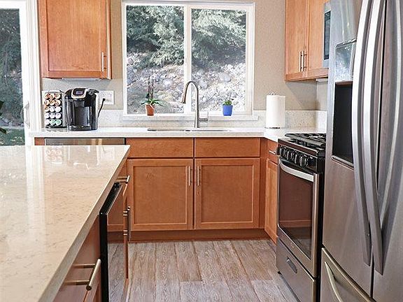 One-Story Gem in Secluded NW! The stunning kitchen is newly remodeled with all new stainless appliances, wine frig, Quartz counters, large center island, new cabinetry and lighting. New flooring is neutral and offers a cohesive, stylish look. Vaulted ceilings throughout create a spacious, open feel. The wood-burning fireplace provides a focal point in the great room and promises a warm, cozy winter. The master suite features a semi-enclosed bathroom for privacy.
