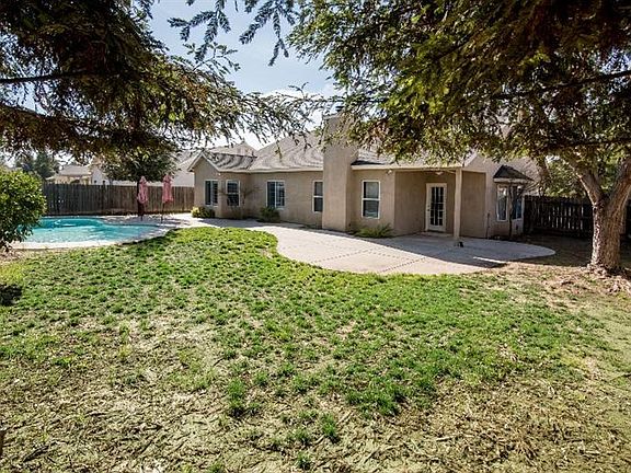 This beautiful Lennar 4 bed/2 bath home with over 1800 sqft is located in prestigious Clovis Unified School District and is about half a mile from Garfield Elementary, Alta Sierra Intermediate and Buchanan High School. The quiet cul-de-sac lot offers minimal traffic and is perfect for a family. The open floor plan greets you as you enter the home. There is a brick fireplace, tons of natural light, and brand new carpet throughout. The kitchen has white appliances, a gas range, a pantry, a practical center island, and laminate flooring. One secluded room off the hall bath could be a great office, playroom, or 4th bedroom. The master suite comes complete with a soaking tub, large walk in closet, and elevated ceilings. The backyard is your own private oasis with a gorgeous saltwater pool, large shade trees, lots of space, concrete walk ways, an enlarged concrete patio area, a covered patio and evening shade. With only one owner this well cared for home is ready for its next owner.