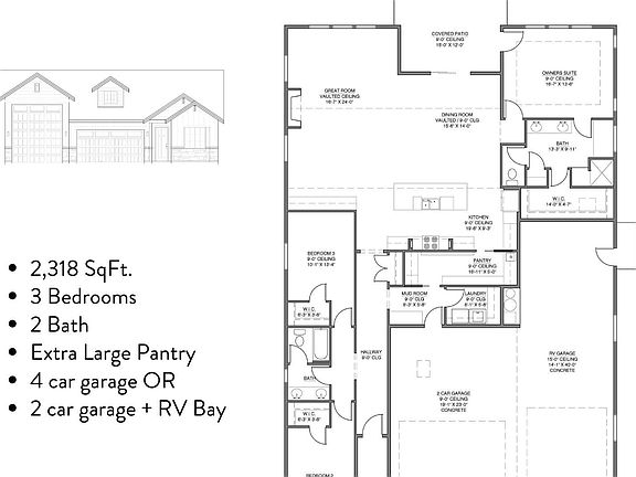 Rainier model located in a gated community with resort-style amenities including a community pool, pickleball courts, and scenic walking paths. This striking new construction home spans 2,318 sq ft with 3 bedrooms and 2 baths and includes a spacious RV garage. The great room showcases a vaulted ceiling and open-concept design that separates living areas while enhancing light and flow. The gourmet kitchen is a chef’s dream featuring Bosch appliances, an extra large pass-through custom pantry, and expansive countertops perfect for prep and storage. Adjacent dining and living areas offer seamless entertaining and everyday comfort. Modern design meets functionality throughout this thoughtfully crafted residence.