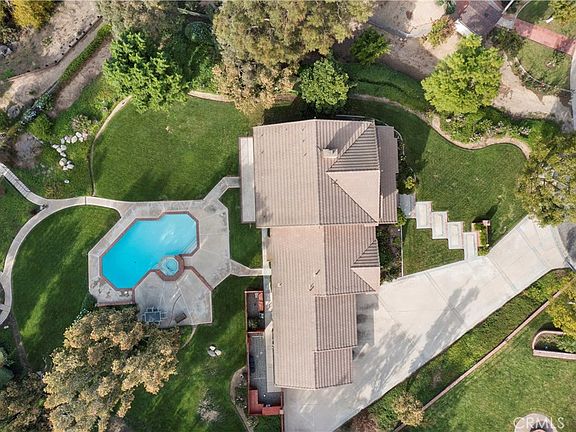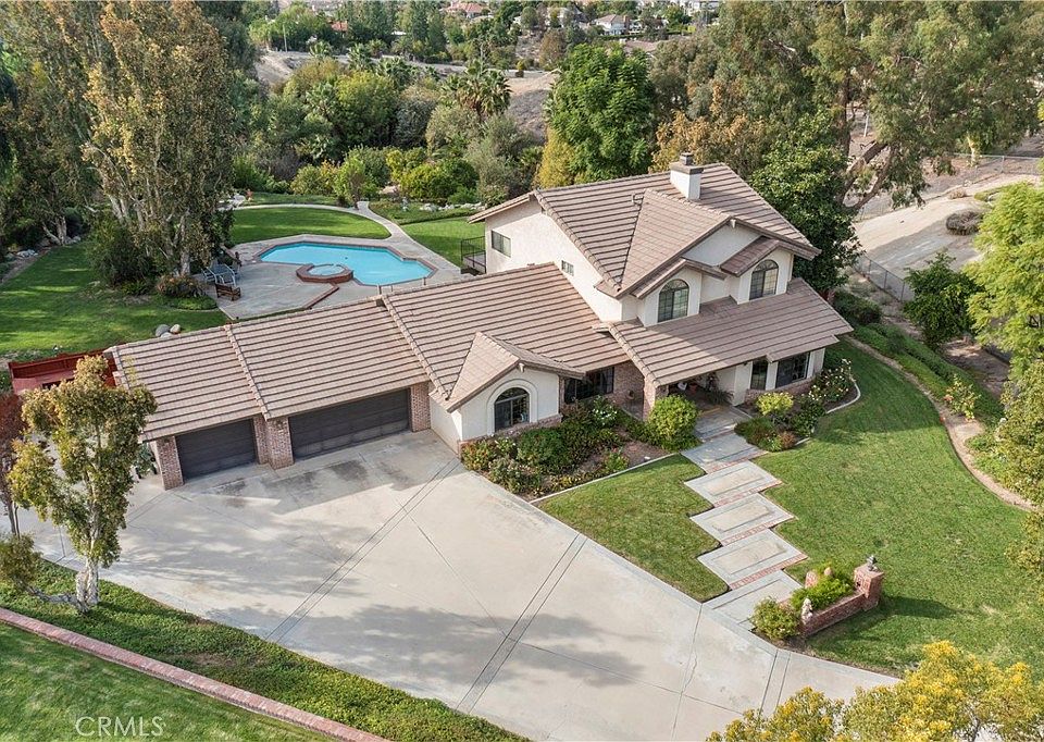 ALESSANDRO HEIGHTS- CRYSTAL RIDGE ESTATES- Nestled at the end of a quiet cul-de-sac on an elevated ridge and surrounded by rolling hills with a year-round stream creating a moat from neighboring homes is the custom built traditional home available from its original owners! The sheltered porch opens into the foyer which is flanked by the large forma living and dining rooms. At the rear of the homes is the spacious family room with fireplace and views of the pool area city, rolling hills and mountains beyond! Open concept kitchen with breakfast bar and eating area. Generous ground floor bedroom with built-ins serves as an ideal home office as well. At the top of the stairs is the luxurious master suite with large bath and walk-in-closet. Two additional bedrooms and a full bath complete the second floor for a total of 4 bedrooms and 3 bathrooms. Beautiful grounds envelope the residence and pool/spa area with expansive lawns, mature trees and a private fruit orchard containing multiple varieties. Indoor laundry room, loads of build-in storage and an over-sized 3-car attached garage. Incredibly private and serene this property is an special opportunity to reside among multi-million dollar estates within one of Riverside's most highly sought after neighborhoods at a fraction of the investment!