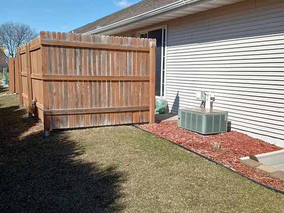 : Welcome to this well maintained 2 bedroom condo, 2 bath home This home has been well loved Don't miss this beautiful clean 1st floor westside condo. 1st floor master bedroom and bath. Large open dining and kitchen. Corner gas fireplace and first floor laundry. custom blinds in living room and bedroom are included as well as the new dishwasher from 3/22 and the 6-month-old washer! Patio doors to backyard, backyard is the length of the house per owners don't be fooled by the brown fencing. Full basement is partially finished with large egress window basement has tons of storge space, there is also potential for a bathroom. Not much to do for upkeep as the $160 monthly fees takes care of snow, lawn, and exterior maintenance. Pets are allowed.