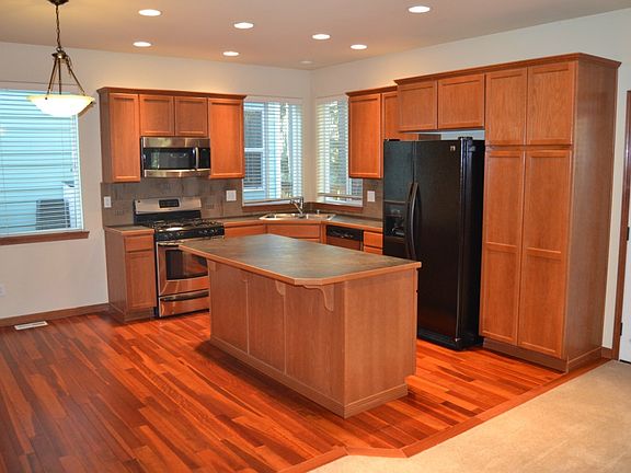 Like new two story home with 1700 sqft finished plus a 713 sqft of unfinished daylight basement. Three bedrooms up with two full baths. The main floor features a great room concept with hardwood floors in the kitchen. On the lower level an unfinished basement that could be whatever you want, a very large rec room, two more bedrooms, or a mil, with space for a fourth bathroom with roughed in plumbing. The basement opens on to a large secluded patio. The two car garage finished off the home.