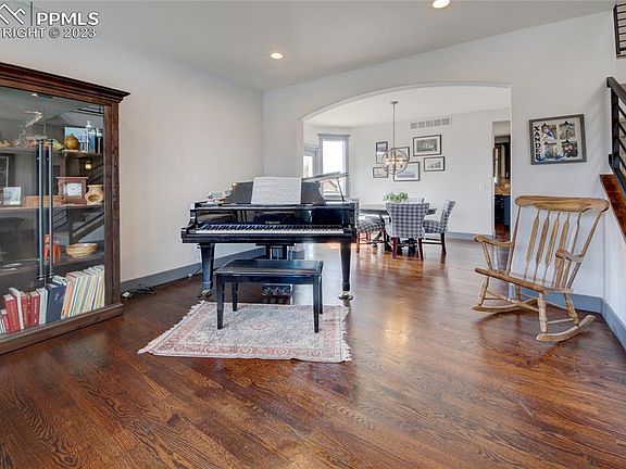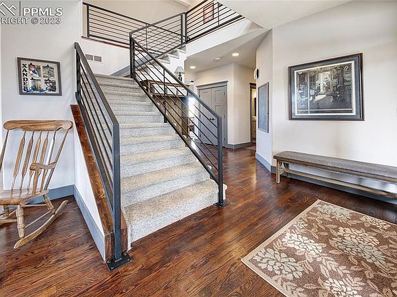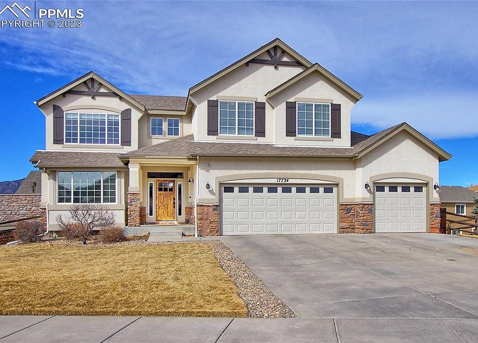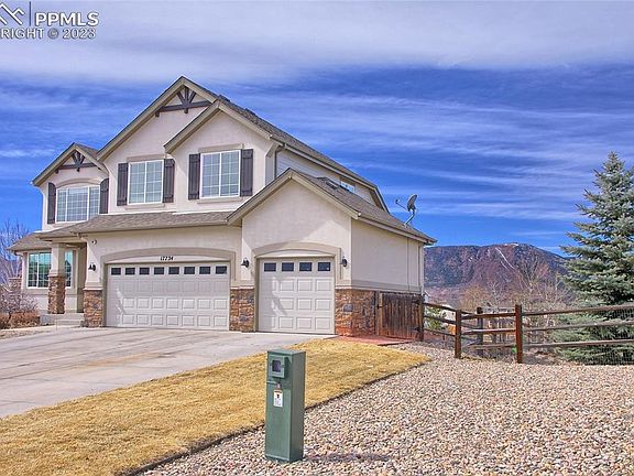 Welcome to this beautifully updated home. The custom Alderwood front door with Transome window welcomes you into the foyer adjacent to the formal living room and dining room, with slider door leading you to the large deck (approx. 500 sq. ft.) with custom glass panels and wrought iron railings with lighting. Also on the main level, kitchen with granite counters, double oven (top is convection/microwave combo), maple cabinets, 5-burner gas stove, walk-in pantry with built-in shelves and mini-fridge. Open concept to the Family room with vaulted ceiling, floor-to-ceiling stone-faced gas fireplace, custom floating shelves with lighting and build-in desk. Slider door out to deck with built-in grill and fridge, and beautiful mountain views. Large laundry room with sink and cabinets, as well as powder room with custom glaze paint. Upper level you will find the Master Suite - large bedroom with Shiplap accent wall, black-out shades, vaulted ceiling w/exposed beam, 5-piece bath with jetted tub, double vanity and walk-in closet. Two additional bedrooms and full bath also on upper level. Fully finished basement has a tray ceiling, bedroom, kitchen area with refrigerator, sink and wired for microwave, living area, and "flex space" currently used as a Salon (exercise room? game room?), adjacent unfinished storage area is perfect for all your seasonal items. Basement is a walk-out to large concrete patio and backyard. Other highlights include 3-car attached garage (one bay currently a workhop - shelves and ceiling racks stay); 2 furnaces with humidifiers and 2 A/C units; custom solid 3-panel doors through with upgraded custom trim around all doors; Gun metal railings on all stairs; security system with cameras stay with the home; new landscaping and sprinklers front and back; new exterior paint 2022; television and sound bar stay in the Family Room. Come see this special custom home today!