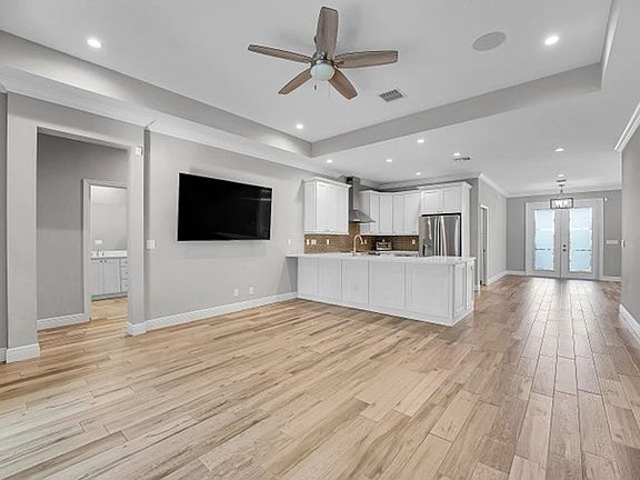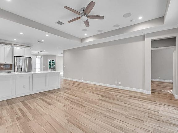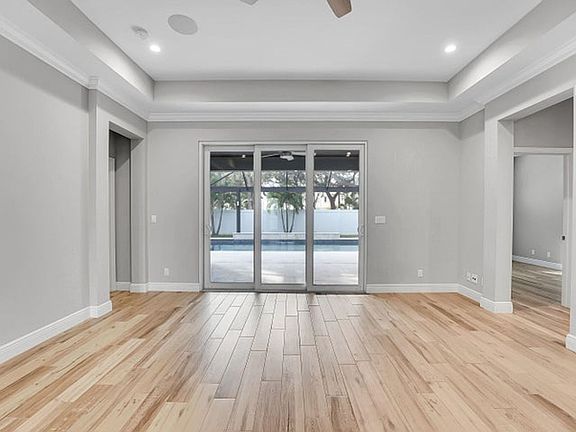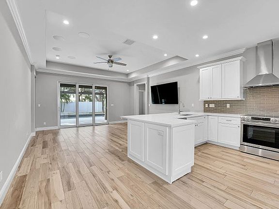 Courtesy of Swope Lees Commercial Real Estate LLC Built in 2018 this elegant pool home boast many amenities for a Florida Lifestyle. The home is sold CBS construction with a mental roof that has solar panels that meter back to the utility company for lower energy costs. The home has an open floor plan for easy entertaining, a modern open kitchen with stainless steel appliances and several flat screen TVs. The Master bath has a separate tub and walk-in shower, dual sinks and plenty of space for residents to feel uncrowded. Walk-in closets with built-in make this house a total dream. The living room opens out to a covered lanai with a ceiling fan to keep the you cool when entertaining outside or just keeping an eye on the family playing in the screen covered pool and hot tub. This is a beautiful home in great school districts,come look