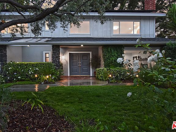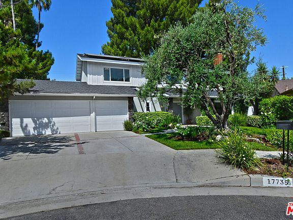Nestled in a serene cul-de-sac South of the Boulevard, in a prime Encino location, this exquisite two-story traditional home offers unparalleled charm and convenience. Boasting stunning curb appeal, the residence features a grand two-story front elevation, beautifully manicured landscaping, and a majestic olive tree that welcomes you home. Step through the double front doors into a soaring foyer with high ceilings, a custom chandelier, a beautiful staircase, and an elegant powder room. To your right, the formal living room impresses with a striking stone fireplace and a large picture window, flowing seamlessly into the spacious formal dining room, perfect for hosting memorable gatherings. The updated kitchen is a chef's dream, complete with top-of-the-line stainless steel appliances, custom cabinetry, a granite center island with an additional built-in fridge, and a breakfast area that opens to the stunning backyard through sliding doors. The oversized family room, ideal for movie nights, accommodates a large sectional and big-screen TV, and includes a fridge and a versatile area for a card table with, built-ins, and sliding doors leading to the backyard. Upstairs, four generously-sized bedrooms feature picture windows and ample closet space. The stylish hall bath features a dual sink vanity and a custom-tiled shower. The luxurious primary retreat boasts a spacious walk-in closet and an ensuite bathroom with double sinks, a separate walk-in shower, and a lavish spa tub for ultimate relaxation. The expansive backyard is truly an entertainer's paradise, with beautiful flagstone decking, a large swimming pool, a spacious deck perfect for lounging or dining al fresco, fig and lemon trees, and a cozy fire pit area with an adjacent grassy patchideal for evening relaxation and socializing with friends. Additional highlights include a three-car direct access garage and substantial energy savings with the completely paid-off solar system. Situated in an ideal location with quick access to freeways and your favorite restaurants, this home is offered at an amazing price. Don't miss the opportunity to make 17735 Palora Street your new home!