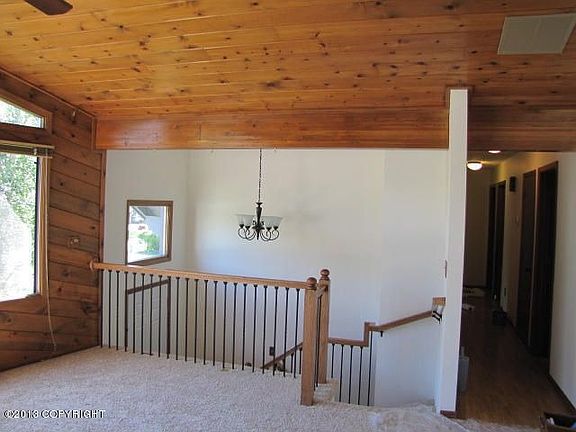 Beautiful upgraded 4 bedrooms (these are big) with new carpet, wrought iron railings, new light fixtures, huge open kitchen with tons of cabinets, neutral throughout ready for you to style, big family room, wood accents in living room and family room, hot tub, slider off kitchen to deck, level useable lot, rv parking, shed, cold storage off garage,easy access to Anchorage and bases, vacant!