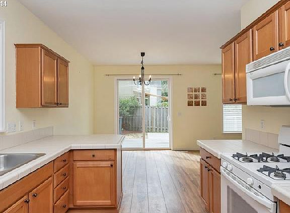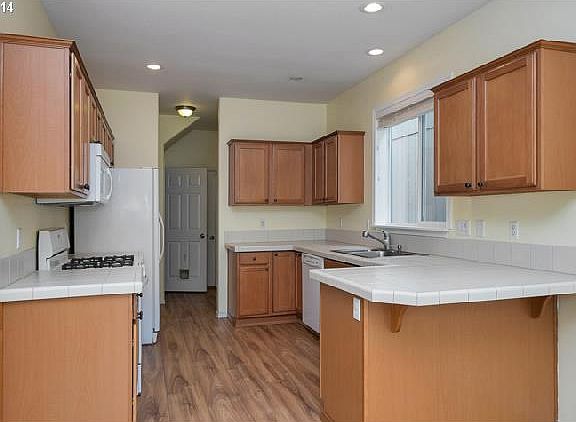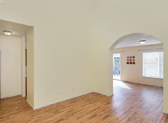 Bright, open greatrm flrplan, updated floors on main, soaring ceilings, elegant archway. Gourm kitch w/tile counters, gas range, ample cabs. Frml din w/slider. Fam rm w/gas FP. Large liv w/soaring ceiling. Master w/2 huge WI closets & prvt ba w/dual sink vanity, jet tub. 2 addit bdrms w/vaults, Jack/Jill ba. Upstairs laundry. O/S 1-car gar w/opener, shelves. Fenced back w/large deck. Near Nike, Intel. Neighborhood park just steps away.