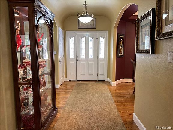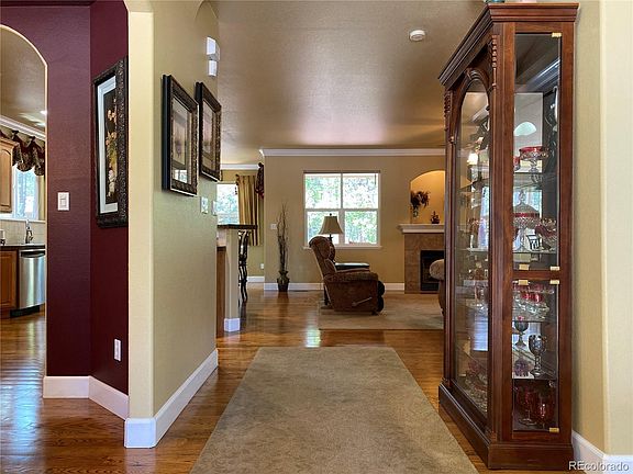 Enjoy Colorado living at its best in this beautiful ranch home nestled in the pines. Located on .76 acres surrounded by pine trees and an incredible Brazilian Redwood rear deck to view the landscape and wildlife. Custom built home with numerous upgraded features that include a kitchen with granite counters, hardwood floors and stainless steel appliances that overlooks the open living room that is perfect for entertaining. Formal dining room for special occasions and an added eat in nook adjacent to the kitchen. Main floor master with 5 piece master bath and soaking tub. Additional bedroom/study on the main level for easy access. As you enter the downstairs walk out basement you will find your dream family room with a rustic feel that has a stone fireplace, wood beams and a hand crafted bar for entertaining. Also included in the basement are 3 additional bedrooms and 2 additional baths for guests or family. Oversized 3 car garage with built in shelves for additional storage. Added features included in this incredible home are a central humidifier that is independent of the furnace, dual 50 gallon water heaters, 2 large pantries for added storage, gutter guards for easy maintenance, crown molding throughout the main floor and a plumbed gas line for barbeque. Included exclusively for home owners are 2 private ponds with trails to enjoy walking, bicycling, fishing or just relaxing. Perfect location close to Hwy 83 and Hwy 105 for easy commute to Denver or Colorado Springs makes this property a must see!
