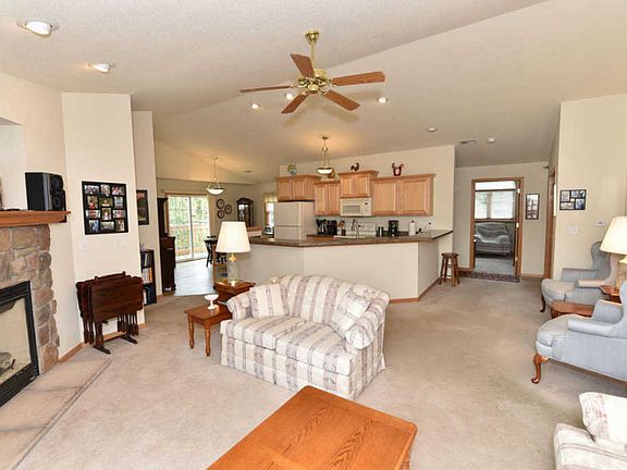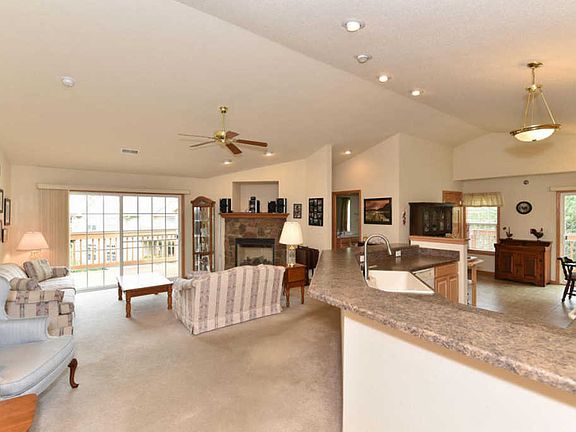 Rare find - end unit w/3 Bed, 2 full bath upper condo w/attached THREE car garage in Jacobs Ridge. Enjoy an open concept layout w/breakfast bar & kitchen area open to living room & dinette space. Living room features a gas fireplace & patio door to deck and nice view. Large master suite w/vaulted ceilings, master bath w/built in laundry, walk in closet, and patio door to deck. Third bedroom can also be a den-office space. All 3 bedrooms are separate from each other. BONUS: private driveway (not shared) & greenspace across the street. All kitchen appliances &washer/dryer included.
