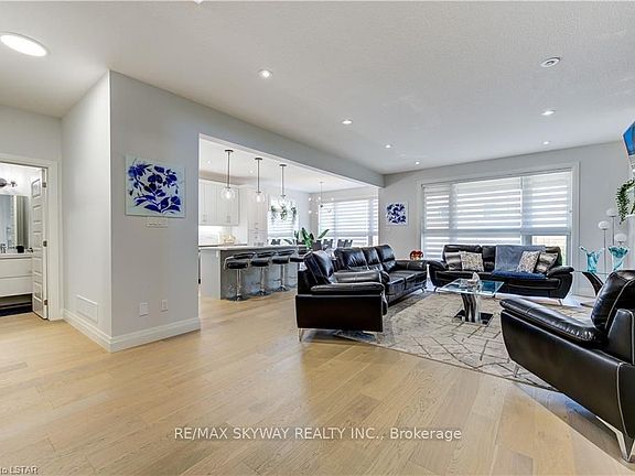 Sits on a PREMIUM Deep LOT that widens to 54ft !! This stunning residence offers approximately 2,440 Sq ft of thoughtfully designed living space, featuring 4 elegant bedrooms and 3.5 luxurious bathrooms. The exterior captivates with its harmonious blend of stone, brick, and Hardi materials, complemented by an 8 Car driveway and double garage providing parking for up to 6 vehicles. Step inside to find engineered hardwood flooring, a striking gas fireplace with built-in shelving in the great room, and a modern kitchen showcasing quartz countertops and an oversized breakfast bar. The main floor is bathed in natural light from enlarged windows, allowing you to enjoy the breathtaking views of Bolar Mountain. Ascend to the master suite, complete with a spa-like en-suite and custom walk-in closet. Three additional bedrooms offer ample space for family and guests, while the unfinished basement invites your creative touch.