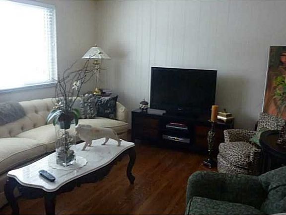 This well-kept 3 bedroom ranch has beautiful refinished hardwood floors throughout. The triangular corner lot has a custom built deck and fence just off the eat-in kitchen. The gas stove, hood, dishwasher and kitchen floor are about 2 yrs. old. There are 4 ceiling fans w/lights and the house has central air conditioning. Custom window blinds and all appliances including the refrigerator, washer, and dryer will remain. The electric service is updated to 150 amps. The garage has new springs and an auto door opener.
