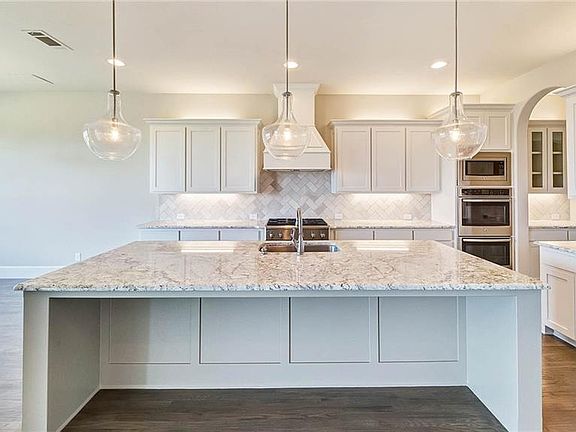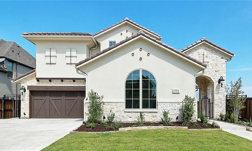 Two story entry with 20-foot ceiling. Formal dining room set at entry. Guest suite located on the first floor. Two-story family room features a fireplace and sliding door. Kitchen has an island with built-in seating space, walk-in pantry and butler's pantry. Morning area features a wall of windows. Library with French doors. Secluded master suite with a tray ceiling and wall of windows. Double door entry to the master bath with dual vanities, garden tub, separate glass-enclosed shower and a walk-in closet. Secondary bedrooms and a game room complete the second floor. Covered backyard patio. Three-car split garage.