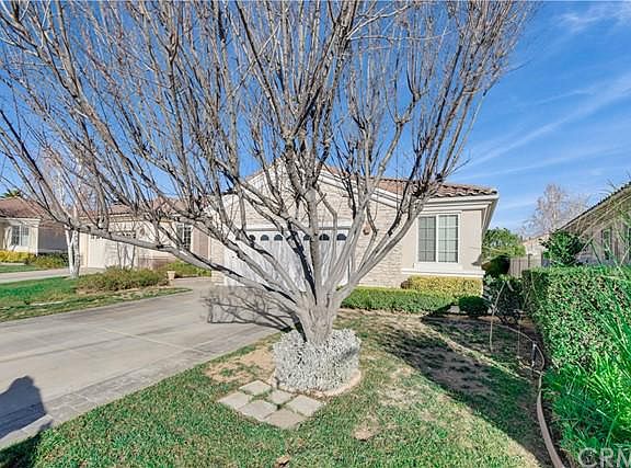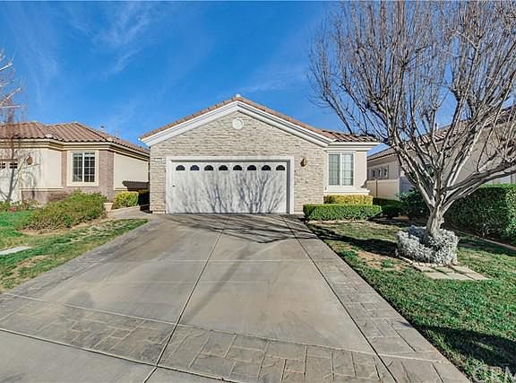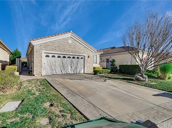 Beautiful 2 bedroom, 2 bathroom single story home with an office located in the Del Webb built 55+ community of Solera in the City of Beaumont! This home features tile flooring throughout common areas, carpet flooring in the office/bedrooms, an attached two car garage, and a spacious backyard! After stepping into the home, you will automatically notice the high ceilings, neutral paint scheme and beautiful tile entry. Directly to your left is a good size bedroom and a bathroom with a shower/tub combination. To the right you will find the office, master bedroom/bathroom, kitchen, dining, and living room. There is also a laundry room right off the kitchen, equipped with cabinets for storage and a sink! The kitchen features formica countertops, oak cabinets with an ample amount of storage space, a breakfast bar with extra seating, recessed lighting, and is open to the dining and living room! The living room features a large window and a sliding door, allowing plenty of natural light to flow through the space. This home offers privacy with the bedrooms being on opposite wings of the home. The master bedroom is a great size and features carpet flooring, ceiling fan, a closet with mirrored doors, a linen closet, and an attached master bathroom equipped with double sinks and a walk-in shower! The backyard features a covered patio with a ceiling fan, concrete, and grass! It is a perfect space for either relaxing or entertaining and is awaiting your personal touches! Community amenities include a swimming pool, spa, tennis courts, a jogging track, a clubhouse, and more. This must-see home is conveniently located near freeway access, shopping, and dining!