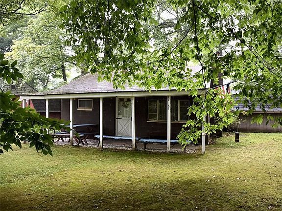 Basic, no frills, get-away camp on almost half acre treed lot -- 4 lots total, subdivision may be possible -- public sewer -- primitive camp with 24x8 front porch -- currently has 8 single beds & was used as summer camp. The oil furnace has not been used. Stove and hot water are propane.