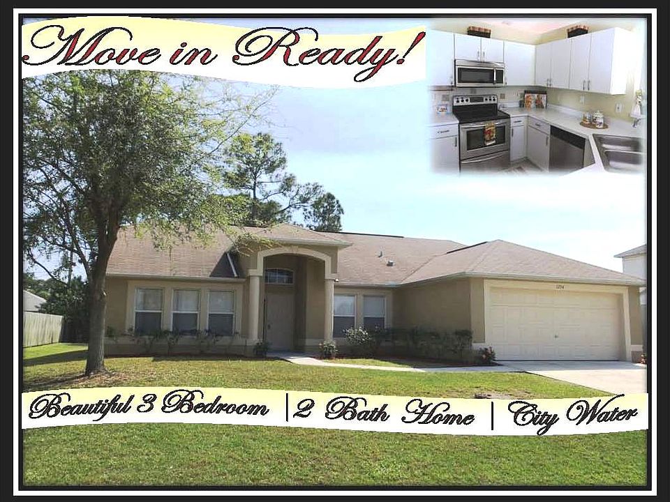 Nice split floor plan with over 1800 sqft. Large famly room with an additional living room, formal dining room and breakfast nook. All applicances included. CITY WATER & NO HOA. Fenced yard. Conveniently located near shops, restaurants, and IMAX Theater. Less than 30 minutes from the BEACHES, FIT, LOCKHEED MARTIN, L3 HARRIS, and NORTHROP.