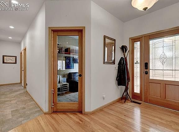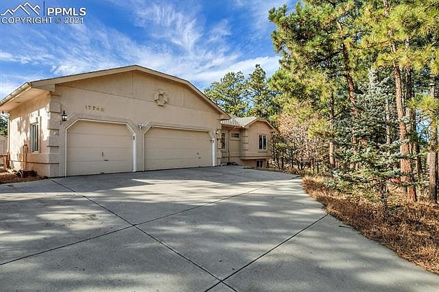 Come and see this beautiful stucco rancher on a .75-acre treed lot in Woodmoor. The main level features a living room with gas fireplace, formal dining room, and private office. The kitchen is a chef's dream with a gas range/oven AND another wall oven and convection/microwave. The classic white cabinetry and vaulted ceiling make the space sunny and bright, and the granite counters and large island offer plenty of space to serve your tasty treats. Adjoining the kitchen is the formal dining room with built-in sideboard for your dishes and linens. Down the main level hallway is the master suite with built-in wardrobe, spa-like shower and deep tub, and walk-in closet. The master bedroom walks out to the back deck with pergola, a great space for your morning coffee. Another bedroom and full bathroom complete the main level. Downstairs are two more spacious bedrooms with walk-in closets and another full bath. The lower level rec room with fireplace is a perfect place for movies or gaming and walks out to a side patio. A huge storage room offers space for all your seasonal decor. This home features a high-efficiency furnace, central air, tankless water heater, backyard storage shed, Ring doorbell and 4 exterior security cameras, pull-out pantry shelves, and a BRAND NEW ROOF soon to be installed. Woodmoor offers 24/7 security, greenspaces for walking, Toboggan Hill for winter sledding, and a Community Room in The Barn that residents can use once every six months.