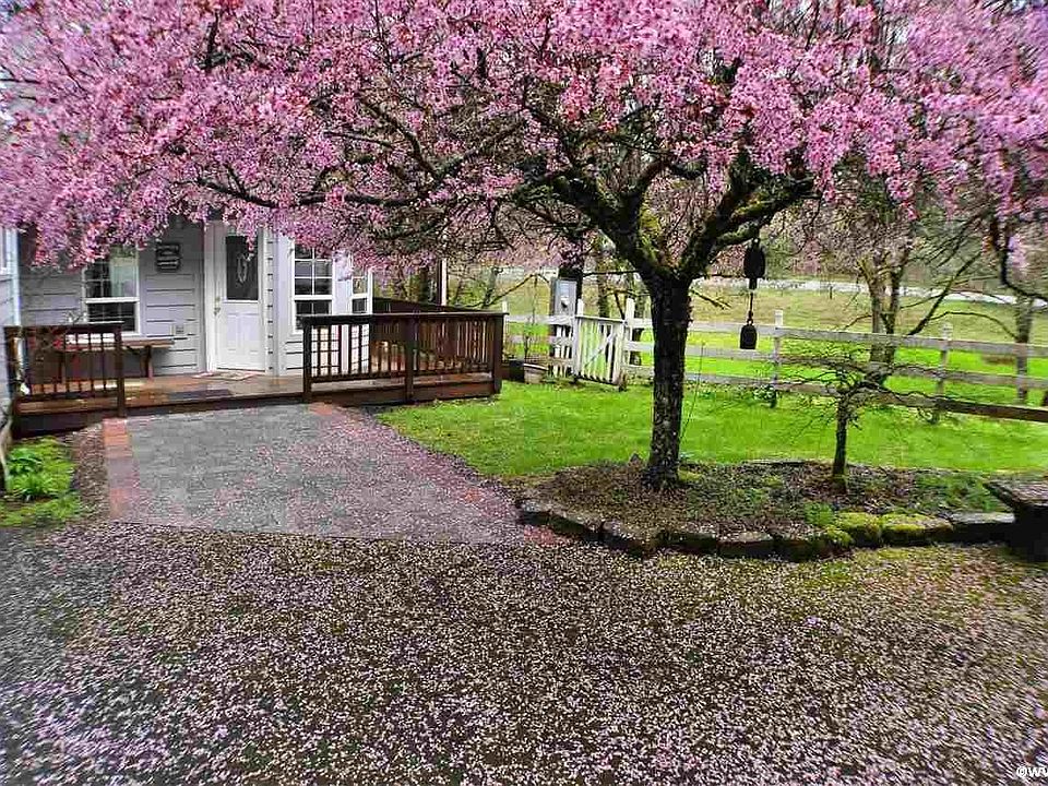 Accepted Offer with Contingencies. Updated home nestled in a story-book setting. Year-round creek winds its way through the property. Paved and gated driveway. Well-maintained little red barn and large two-story shop with concrete floor, two roll-up doors and wired for 22O amp. Covered parking also available behind shop. Marketable timber, garden space and pasture. Home features tasteful updates throughout with master and laundry on the main level. Farm and timber deferral!