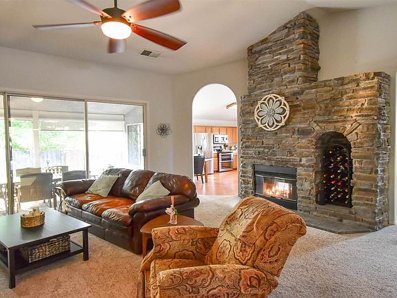 Rolling Oaks is a beautiful neighborhood, and this fine home is situated perfectly across from a lush and pristine park. The front yard is low maintenance, professionally landscaped and includes attractive crepe myrtle trees. Inside this single level home you will be impressed by the cathedral ceilings, double-sided fireplace between the living room and the family room, a garden kitchen window and Tuscan arches adding nice architectural features. The kitchen's stainless steel appliances, oak cabinets, tile counter tops, breakfast bar, and dining area make it an inviting experience for everyone. This three bedroom, two bathroom 1743 square foot home comes with a laundry room, newer (2017) HVAC system, and (2018) newer roof. The master bathroom has a tub/ shower, dual sinks and a closeted toilet. The backyard has a covered patio, a gorgeous lawn, brick patio and a fenced yard. This ideal Sierra Foothills location is close to the quaint & historic Jamestown and Sonora and nearby Yosemite and Pinecrest where outdoor recreation abounds.