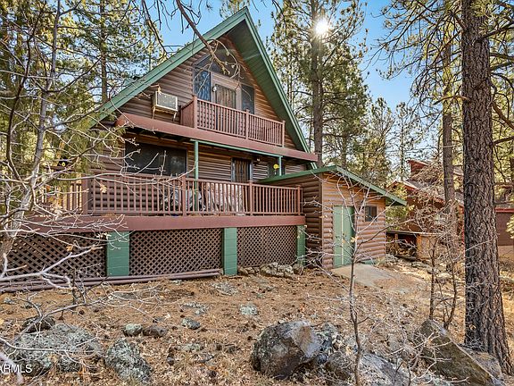 Welcome to your private hideaway in the pines. Cozy 2 bed 1 bath with loft is Ideal for cool summer getaways or snowy winter escapes. The Chalet Style Cabin features a great room / open floorplan with high wood beamed cathedral ceilings, lots of natural light, wood burning fireplace and oversized loft for game room or additional sleeping area. Loft has it's own exit to private deck with mountain views. Outside you'll find a spacious wrap around wood deck with plenty of room for hot tub, grill and entertainment area for summer cook outs. Oversized lot with large secure storage room in back to house all your mountain toys!!