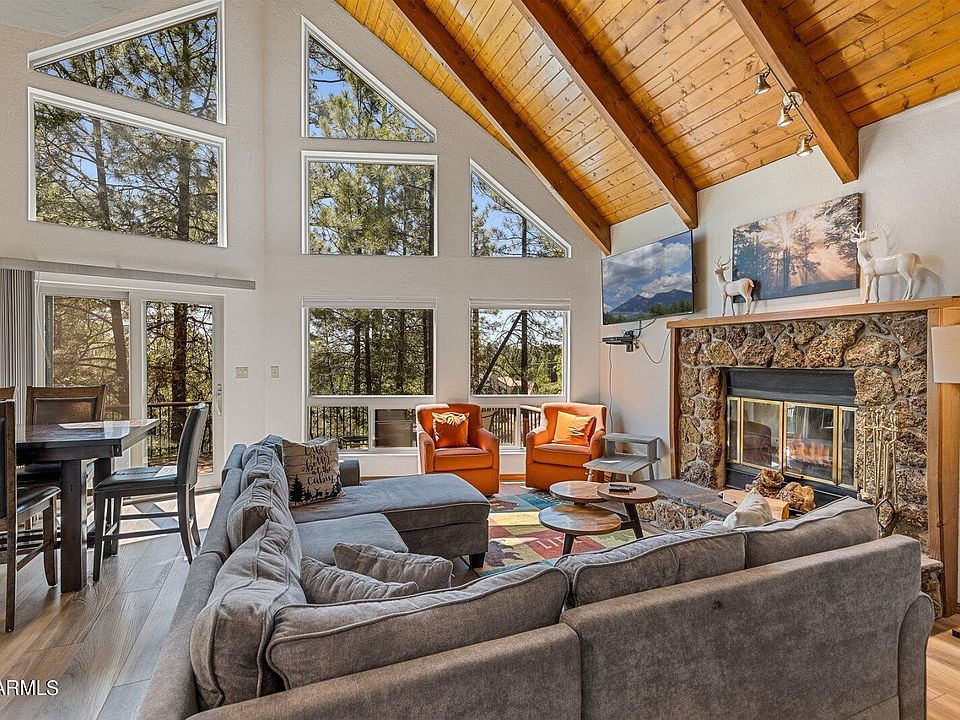 WHETHER YOU ARE LOOKING FOR YOUR OWN PRIVATE GETAWAY, OR A PROVEN INCOME PRODUCING PROPERTY, LOOK NO FURTHER. PRICED UNDER MARKET VALUE, THIS BEAUTIFUL CHALET LOCATED ON A QUIET CULDESAC LOT HAS NEARLY $300K IN REMODELING FROM TOP TO BOTTOM AND IS THE CREAM OF THE CROP. FEEL THE RELAXATION AS YOU PULL OFF THE FREEWAY AND EXIT AT MUNDS PARK, ROLL DOWN THE WINDOWS AND TAKE IN THE COOL PINE AIR OF NORTHERN ARIZONAS BEST HIDEAWAY. AS YOU PULL UP TO THE PRIVATE LOT, THE HEAVILY TREED LOT GREETS YOU WITH TOWERING PONDEROSA PINES AND A CUSTOM WRAPAROUND PORCH. MAKE YOUR WAY INSIDE TO THE SPACIOUS LIVING ROOM WITH FLOOR TO CEILING WINDOWS THAT HAVE UNDISTURBED FOREST VIEWS, AND YOU ARE SURROUNDED BY THE TONGUE AND GROOVE CEILING AND BEAMS AS WELL AS THE COZY FIELD STONE WOOD BURNING FIREPLACE. THIS BRAND NEW KITCHEN IS THE HEART OF THE HOME. RAISED PANEL CABINETRY, CUSTOM SLAB GRANITE, AND ALL STAINLESS STEEL APPLIANCES WILL MAKE COOKING FAMILY DINNERS OR SUNDAY BRUNCH A PLEASURE. LOCATED JUST OFF THE KITCHEN IS THE DINING AREA WHICH IS PERFECT FOR FAMILY GATHERINGS AND LONG HOLIDAY WEEKENDS. THERE ARE TWO SPACIOUS BEDROOMS DOWNSTAIRS WITH AMAZING VIEWS AND LOTS OF NATURAL LIGHT AS WELL AS A FULLY REMODELED BATH. CUSTOM PAINT AND FLOORING LEAD YOU UP THE OPEN STAIRCASE TO THE SPACIOUS LOFT WHICH HAS MORE THAN ENOUGH ROOM FOR THE YOUNG ONES AND A FULL SIZE BED. THE OWNERS SUITE GREETS YOU WITH NATURAL LIGHT FROM THE OVERSIZED WINDOWS. THE ATTACHED ENSUITE HAS ALSO BEEN COMPLETELY REMODELED INCLUDING WALK IN SHOWER AND WALK IN CLOSET. BECAUSE THIS IS NORTHERN ARIZONA, EVERYONE WANTS TO BE OUTSIDE TO ENJOY THE COOLER TEMPS AND FRESH AIR. ENJOY THE BEAUTIFUL SUNSETS AND FAMILY BBQS ON THE CUSTOM PORCH THAT ITSELF IS OVER 800SQFT. MUNDS PARK IS CENTRALLY LOCATED WITH A 30 MINUTE DRIVE TO SEDONA OR FLAGSTAFF. OUTDOOR ENTHUSIASTS WILL APPRECIATE THE HIKING TRAILS, MILES OF OHV TRAILS, FISHING/KAYAKING AT LAKE ODELL, OR PLAYING A ROUND OF GOLF AT THE COUNTRY CLUB. EXTENSIVE REMODEL LIST INCLUDES ROOF, SKYLIGHTS, DUAL PANE WINDOWS, FURNACE/AC, TREX DECK, FLOORING, PAINT, NEW ELECTRICAL PANEL, ALL NEW KITCHEN INCLUDING NEW APPLIANCES, AND NEW BATHS JUST TO NAME A FEW. AS AN INCOME PROPERTY THIS HOME GENERATES ON AVERAGE $5000 PER MONTH. MUNDS PARK IS THE PERFECT LOCATION. ONLY 100 MILES FROM PHOENIX, IT IS CONVENIENTLY IN THE MIDDLE OF SEDONA, THE GRAND CANYON, AS WELL AS FLAGSTAFF AND SNOWBOWL. MUNDS PARK ITSELF HAS A GREAT FAMILY AND KID FRIENDLY ATMOSPHERE BUT ALSO INCLUDES A THRIVING ADULT FRIENDLY ATMOSPHERE WITH DRINKS AND LIVE MUSIC AT BORACHOS SALOON. THERE IS GOLF, A COMMUNITY POOL AT THE COUNTRY CLUB, TENNIS AND PICKLEBALL COURTS, A KIDS PLAY AREA, BASKETBALL COURTS, HIKING TRAILS, MILES AND MILES OF OHV TRAILS, AS WELL AS FISHING AND KAYAKING AT LAKE ODELL ALL CONVENIENTLY LOCATED INSIDE MUNDS PARK. THE OWNER WOULD LIKE TO INCLUDE THE PROPERTY AS FULLY FURNISHED FOR THE RIGHT PRICE. THIS PROPERTY HAS A CONSISTENT RENTAL HISTORY WITH INCOME PROOF AVAILABLE FOR INSPECTION. YOU COULD CLOSE ON A THURSDAY, AND BE RENTING IT OUT THE NEXT DAY OR, YOU CAN CALL IT YOUR VERY OWN. THE CHOICE IS YOURS.