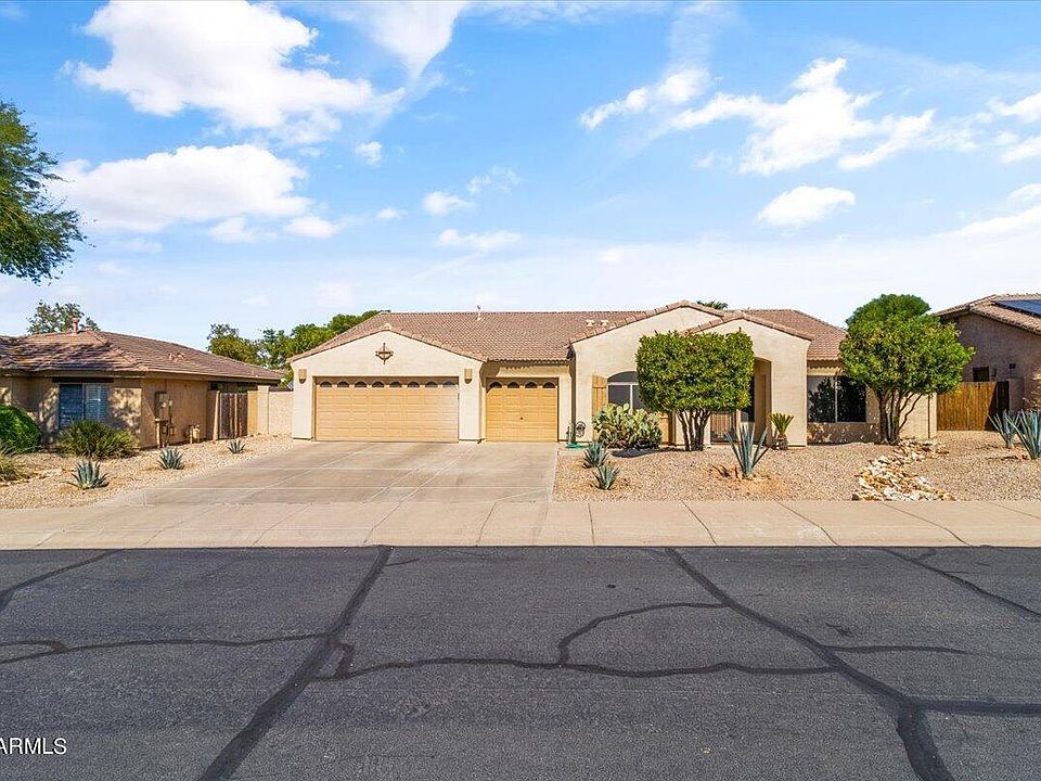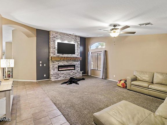 Welcome to the home you want, need, and deserve!! You can have it all with this beauty. This large single story 4 bedroom, 2 bathroom split floor plan is located on an oversized Cul-de-sac in upscale Estrella Mountain. This home features 2 spacious living rooms with a cozy fireplace in one, beautiful tile in all the right places, large kitchen with granite countertops, a breakfast bar, stainless steel appliances, and gas stove. Step outside to your backyard oasis where you will be greeted by a covered patio, large pool with a waterfall, a nice heated spa, and a huge Tiki-Hut with a gas grill.