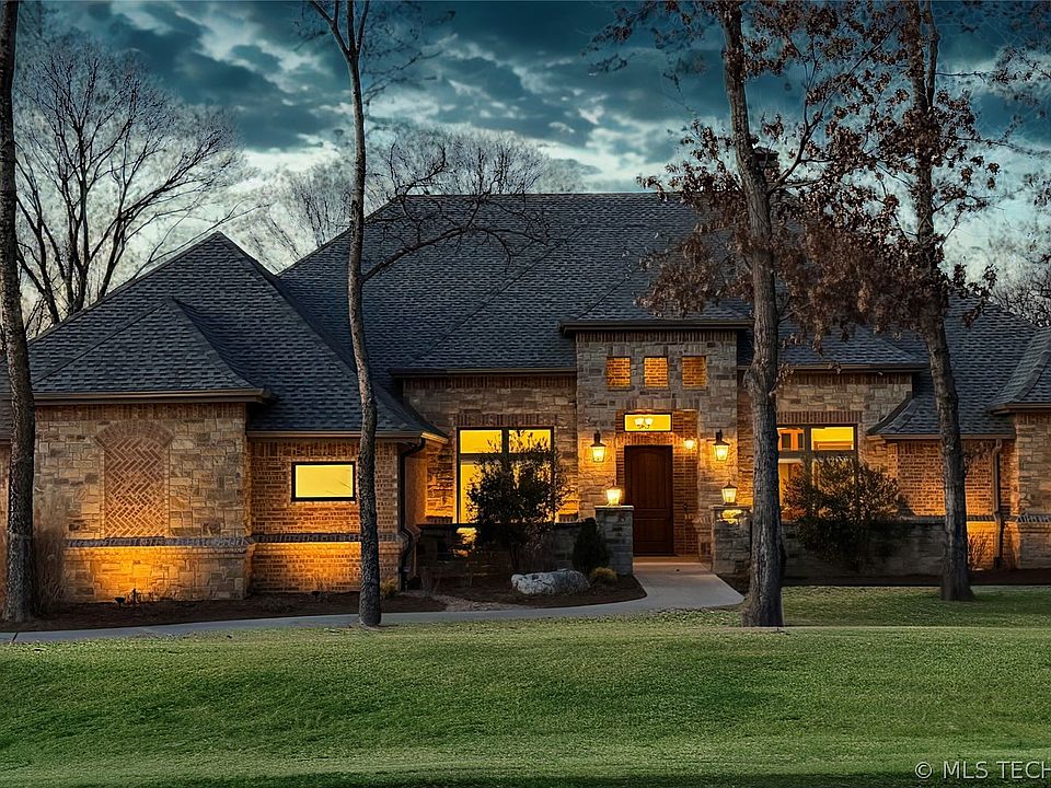 Stunning single-story custom home built by Tocara Custom Home Builders, located in the highly desirable gated community of the Bluffs at Stone Canyon! With the Patriot Golf Club & the Folds of Honor headquarters just moments away, enjoy a unique blend of luxury & community living. This thoughtfully designed 5-bedroom, 5.5-bath home w/ a 4-car garage is ideal for the contemporary household's needs, or anyone seeking comfort & accessibility. Wide, seamless transitions & gently sloped shower entries support easy mobility throughout. The private guest suite includes an ADA-ready bath w/ reinforced walls for future grab bars. Gourmet Kitchen: Oversized Sub-Zero refrigerator, Viking cooktop, double ovens, walk-in working pantry w/ Advantium microwave/convection oven, commercial nugget ice & water dispenser, & dual dishwashers. Premium Safety & Comfort Features: 50kW Cummins natural gas whole-house generator, lightning suppression system, whole house surge protection, fire-&-pest-resistant RockWool insulation, Pella Lifestyle windows & doors w/ between-the-glass shades, blackout shades in all bedrooms, large finished safe room w/ internet connection, Clopay insulated steel garage doors w/ Ultra-Grain finish, Class 4 impact-resistant shingles, full security system, & whole house water filtration system with UV filters. Additional Highlights: Custom millwork, soaring ceilings, abundant built-ins and storage throughout, ethernet