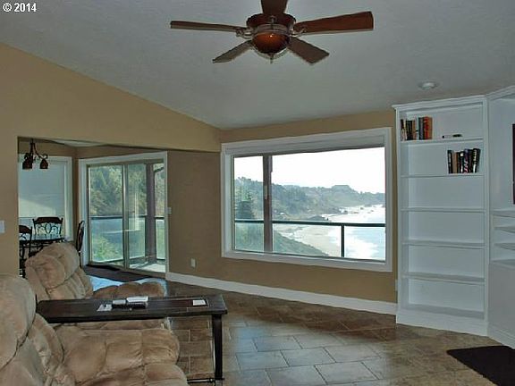 Oceanfront Hideaway! $50,000 in recent renovations! All new kitchen w/high-end Stainless appliances, custom cabinets, Jennaire Stove/Grill/Oven. Exquisite tile flooring. 55"Samsung Smart TV. Gorgeous shelving. Top floor quiet corner. Skylights. Vaulted Ceilings. 2 Storage Units. Furniture! Adjoins 16 miles of oceanfront trails, fabulous beaches. Must see this beach retreat! Pacific NW at its very best!