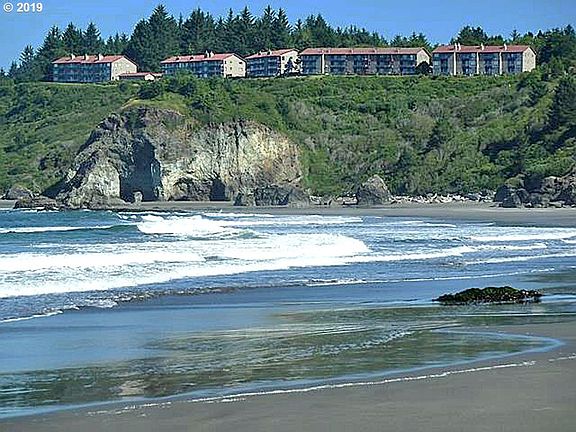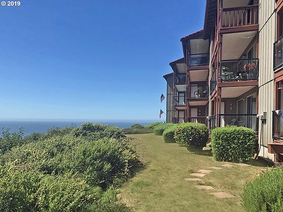 Stunning Oceanfront Retreat! Views of ocean, giant rocks,, island, whitewater & beach from 1st floor corner locale. Renovation includes granite, hardwood floors thuout, tile in baths & entry. New lighting. Location includes trail to fabulous beach (caves, tide pooling) plus The Oregon Coast Trail, with 17 miles of oceanfront trails & pristine beaches begins at your back door. Dog trails on site. Walk to community college. Amazing!