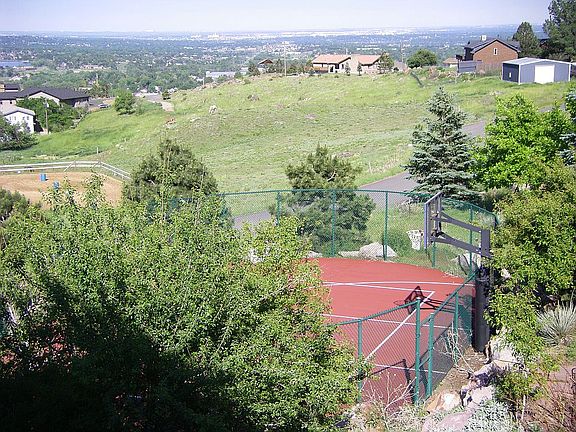 5.83 acre horse property on North Table Mountain in Golden. Direct access to equestrian-hiking-biking trail. Panoramic views of Denver Metro. Raised ranch with loft and walkout lower level & 5 car finished garage with built in cabinets. Guest House has a 967 sq. ft apartment over a 3 car fully finished garage. Sports Court and year 'round temperature controlled Greenhouse. Just minutes from downtown Golden and I-70. Generous room sizes, abundant storage, concrete tile roof, 75' wrap around deck + 75' covered patio. Speakers throughout. Media room. 2 offices + a large loft/flex space with private balcony and full bath. Security system, gated entry + gated RV parking.